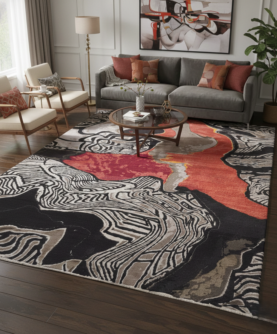 Vintage Brick Red Black Hand Knotted Rug | Luxury Wool & Silk Rugs India