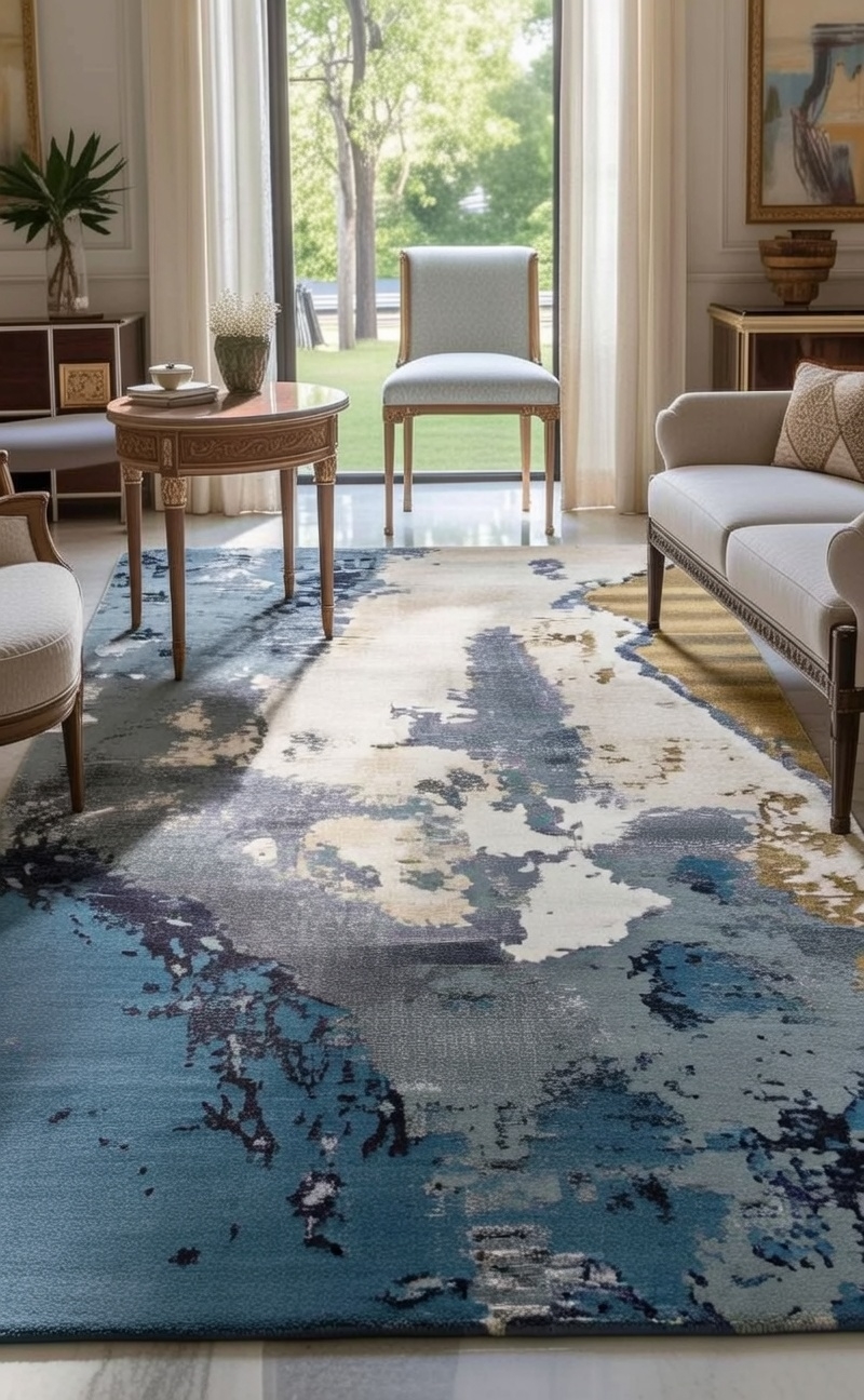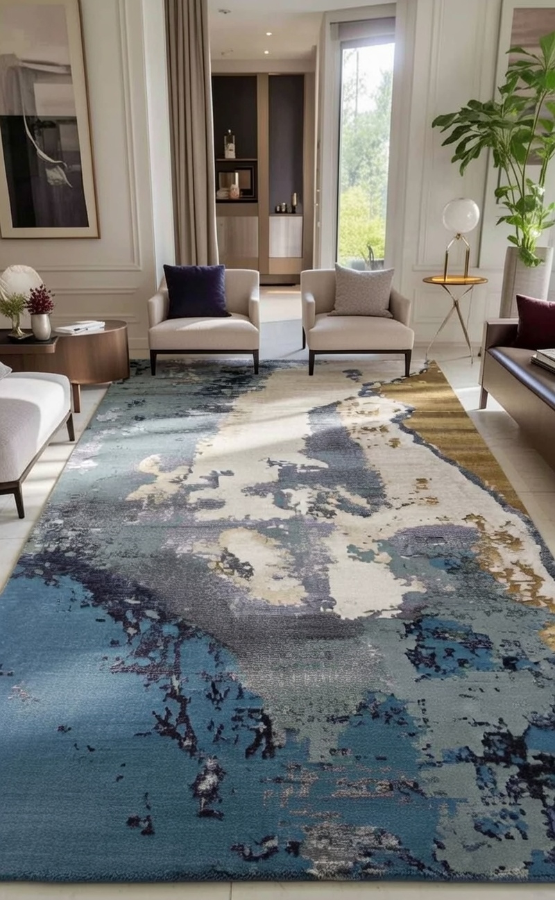 Soft sand hues layered with multi-tonal accents and subtle silk highlights respond beautifully to light, while dense wool yarns ensure durability—ideal for serene, luxury interiors.