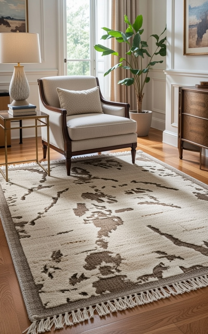 Silk highlights subtly respond to changing light, while dense wool yarns ensure durability—making this rug a sophisticated foundation for modern, bespoke interiors.