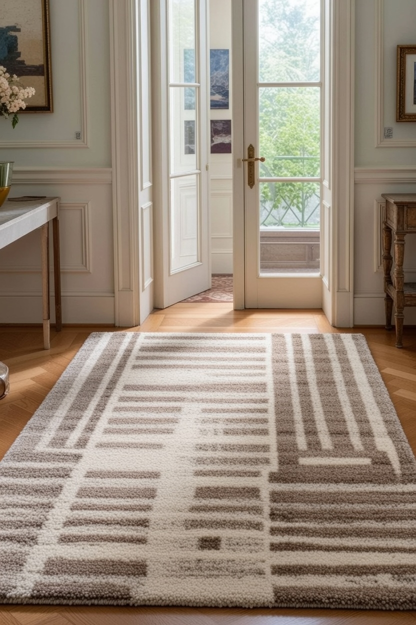 Silk highlights subtly respond to ambient light while dense wool yarns ensure durability—making this rug an excellent choice for sophisticated living spaces and curated interiors.