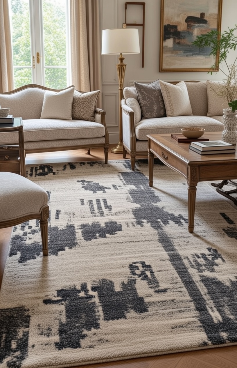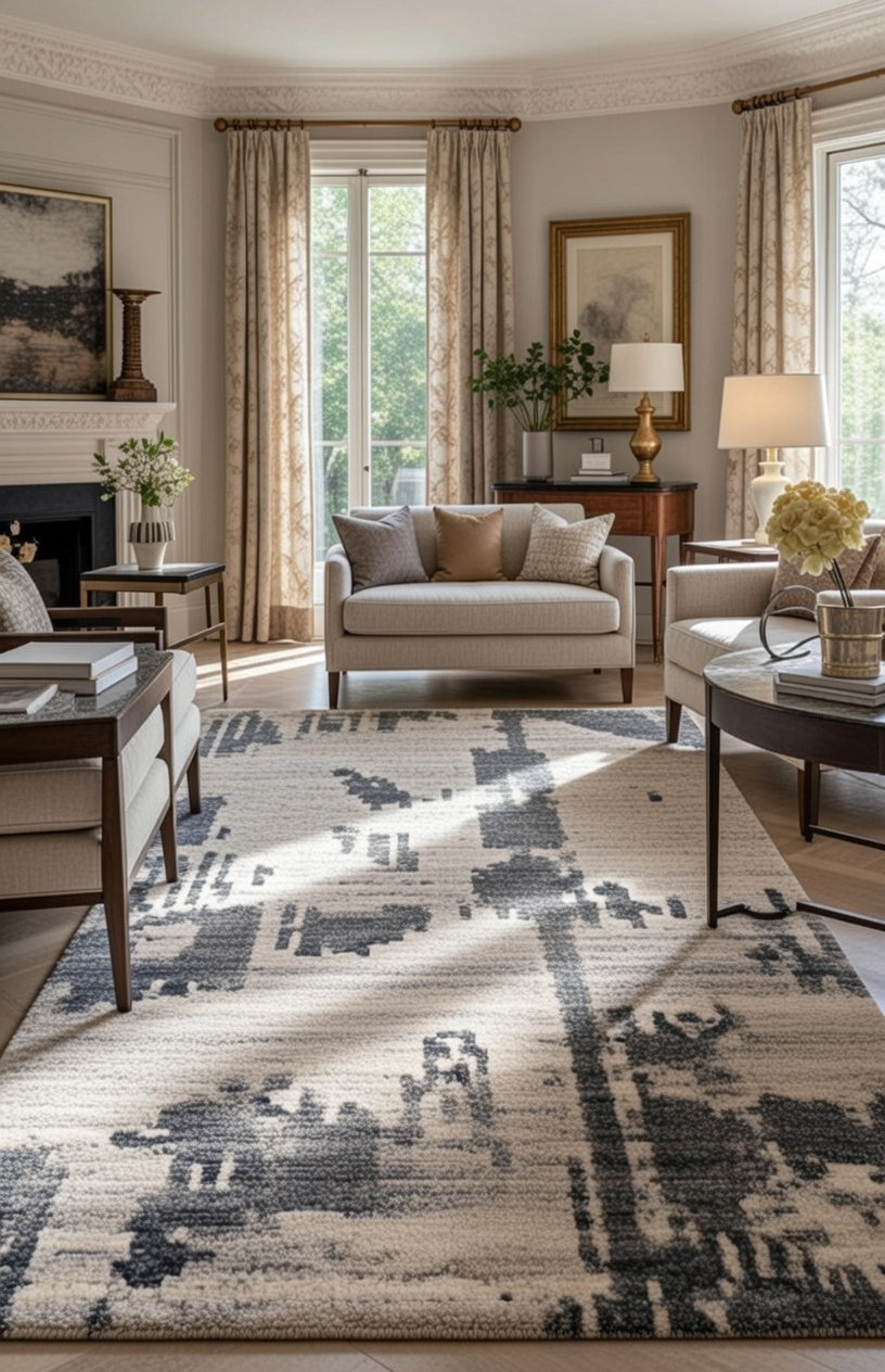 Soft silk accents interact subtly with light while dense wool yarns provide comfort and longevity—making this rug a versatile choice for modern luxury interiors.