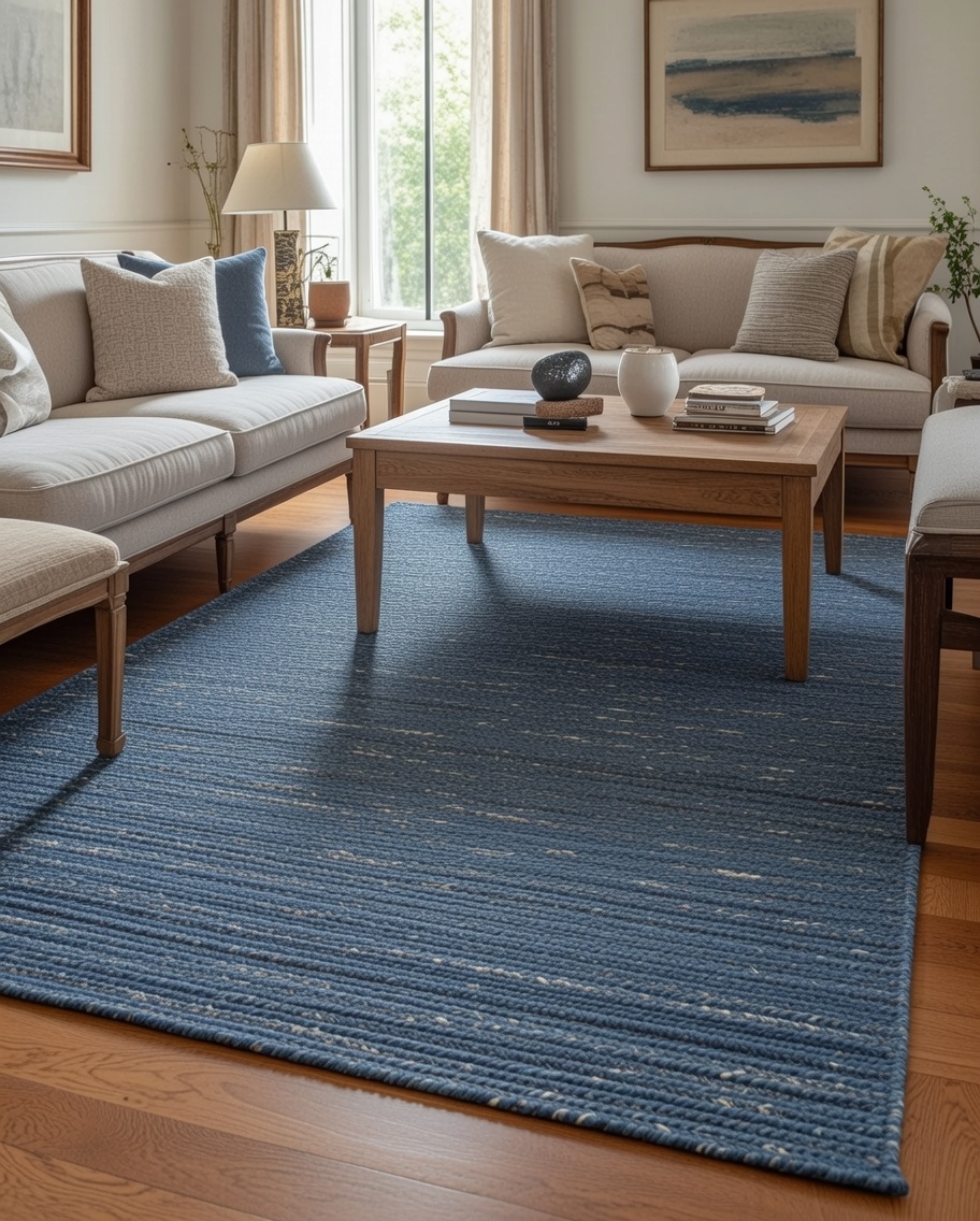 The Incredible Sumak Blueberry Rug blends deep blue elegance with handcrafted natural fibers.